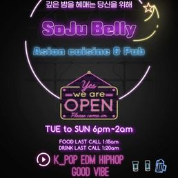Soju Belly is more than just a bar; it's a destination where food, drinks, and good times come together. With its excellent service, diverse menu, and exciting atmosphere, Soju Belly stands out as a must-visit spot in the Garden Grove area. So why not gather your friends, reserve a table, and indulge in the delicious offerings at Soju Belly?